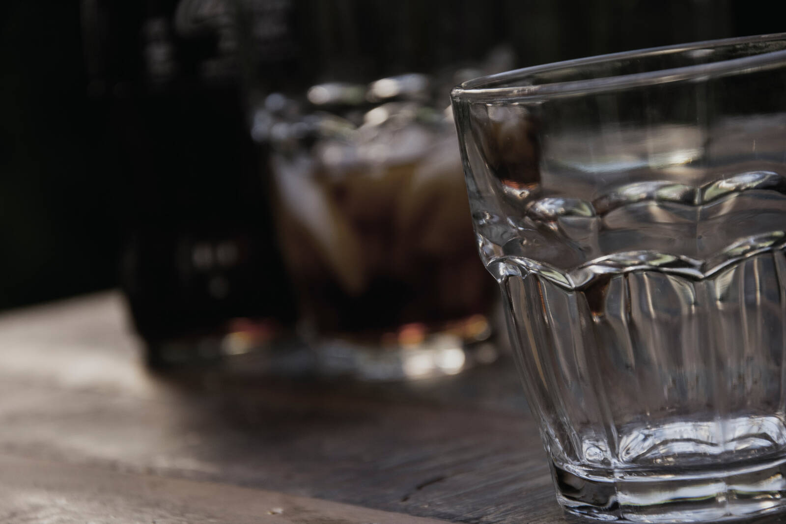 Denna bild blev taget på ett bar. Hur som helst så har jag fokuserat motivet på ena glaset som är lutat. Medans de andra glaset som bakgrund är utsuddat.
