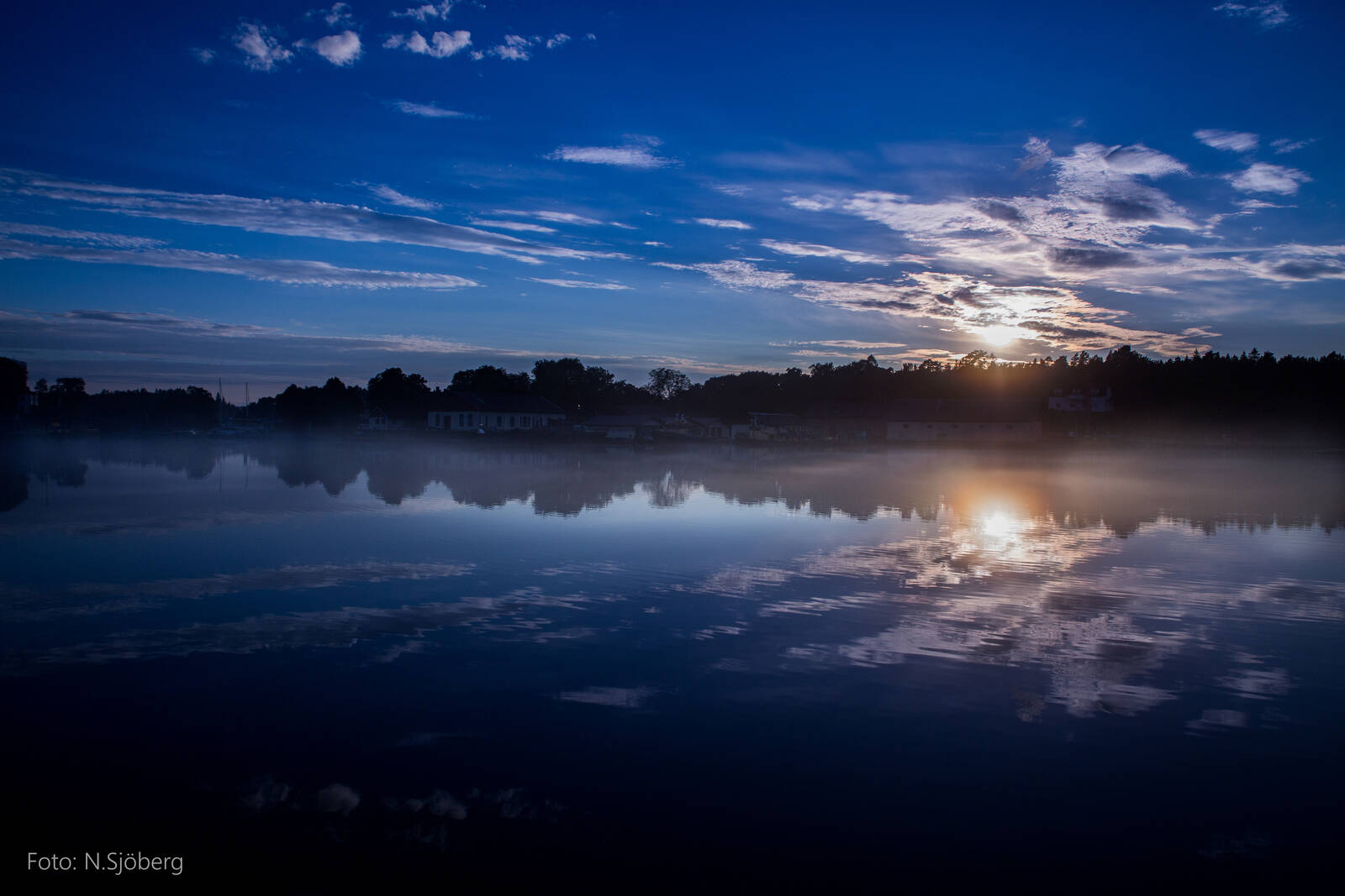 Bilden är tagen efter ett åskoväder. Solen ligger underbart över trädlinjen, tyvärr får jag inte dimma att se lika dramatisk ut på bild som i verkligheten.