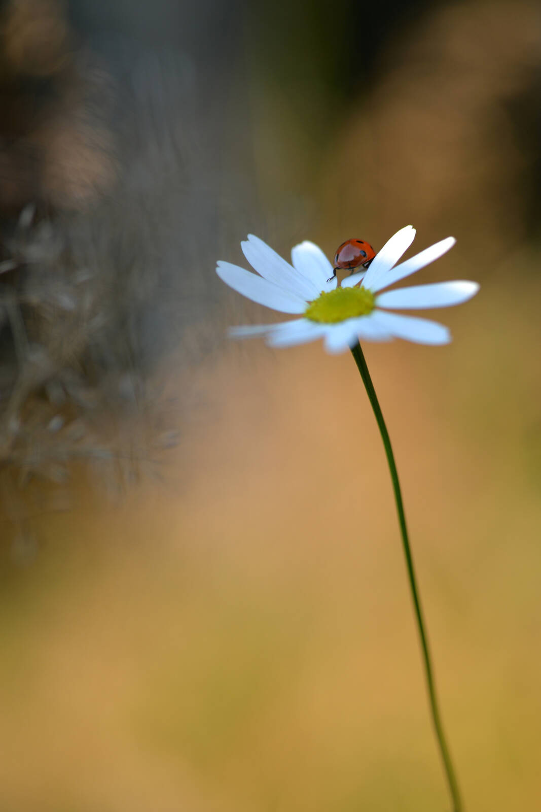 En liten nyckelpiga på en kamomill.