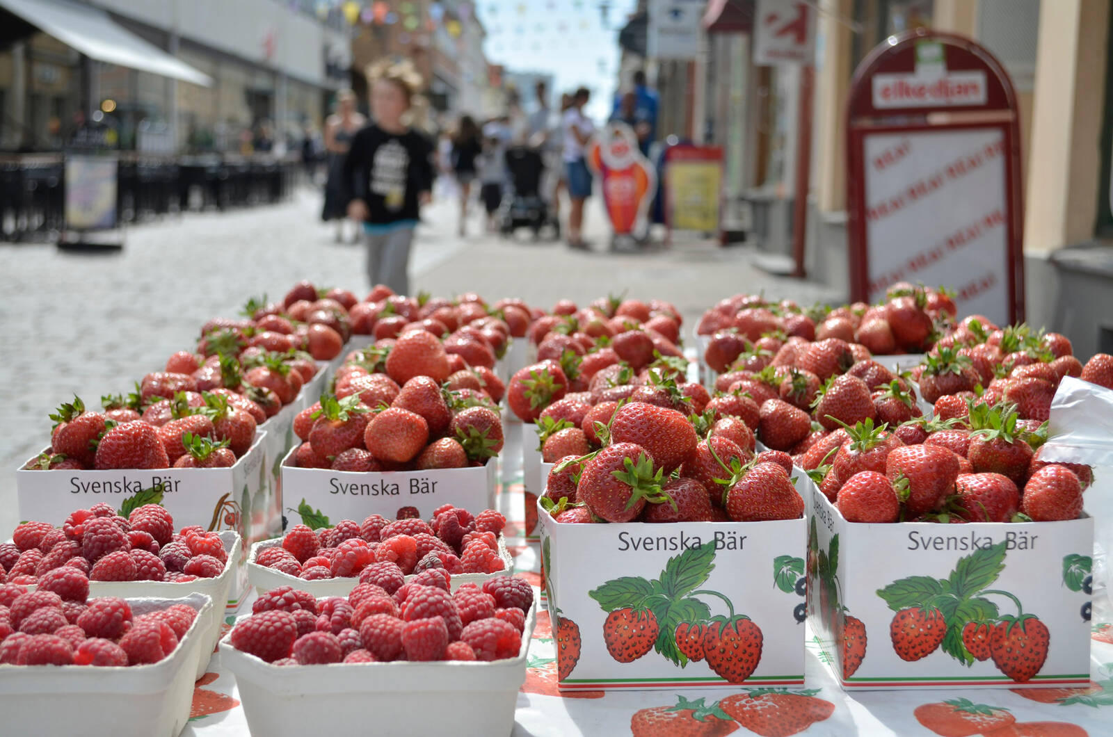 Detta var min bild av "sommarstad" på Kalmar fotomaraton i somras. Jag ville sätta fokus på bären i förgrunden eftersom jordgubbar verkligen andas sommar, samtidigt som jag ändå ville att man skulle skymta staden i bakgrunden.