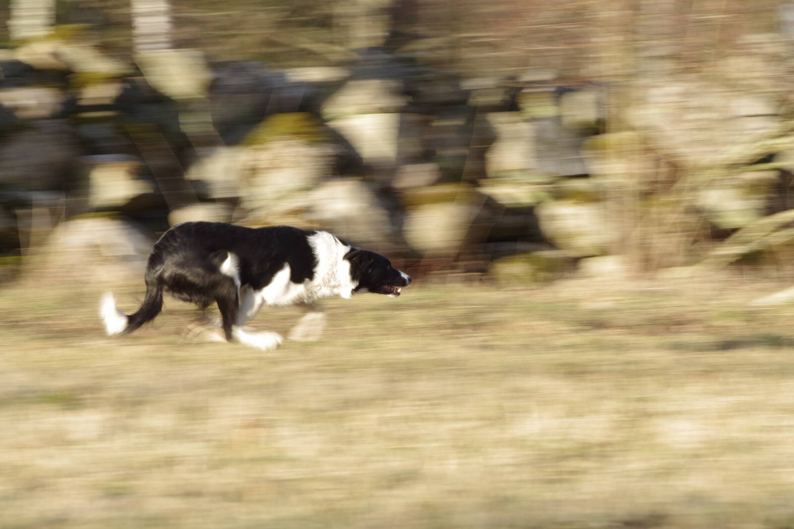 Det var inte svårt att fatta uppgiften men det var sjukt svårt att få skärpa på det rörliga föremålet. Jobbade med 1/40 och 1/60 så av cirka 200 bilder blev det kring 15 med skaplig skärpa på hunden som sprang rätt fort. Det blev en del bra bilder med både panorerings- och rörelseoskärpa, men det var ju inte det som var uppgiften.