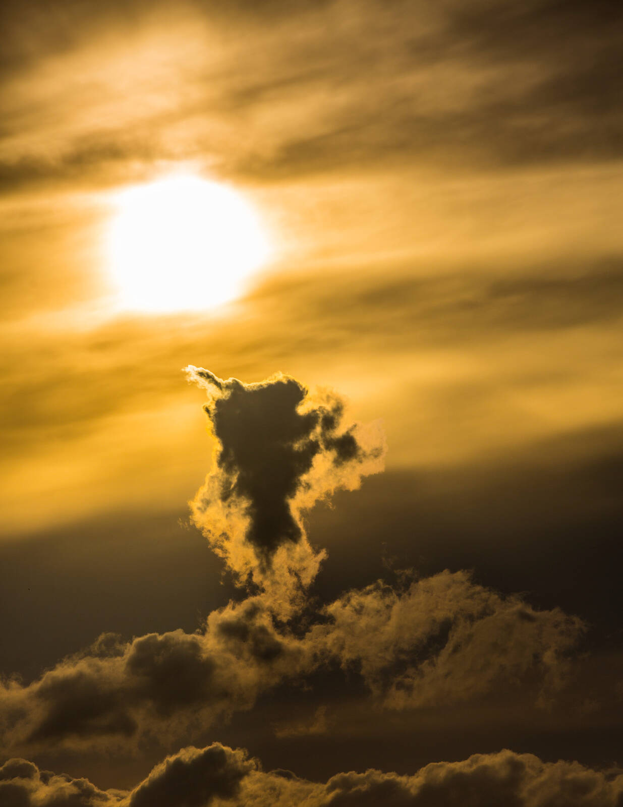 Undrade just vad det var för bild när jag såg den liten...Ovanligt att ett moln står upp sådär, som ett vulkanutbrott eller brand. Bra tänkt i alla fall och kunna se de små förändringarna i naturen. Visst är det ett mönster och det behöver inte bara vara på marken. Hela himlen är ju i ständig förändring och väl värt att leta motiv i.