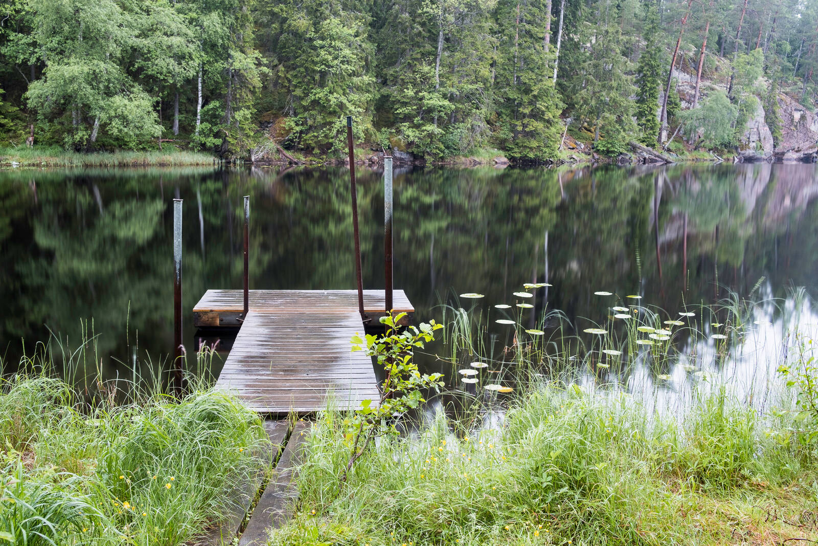 Kompositionen är planerad så att blicken skall fall mot bryggan. Bilden tagen då det var ganska mörkt ute men har valt att inte mörka ner ned. F6,4 30 sek.