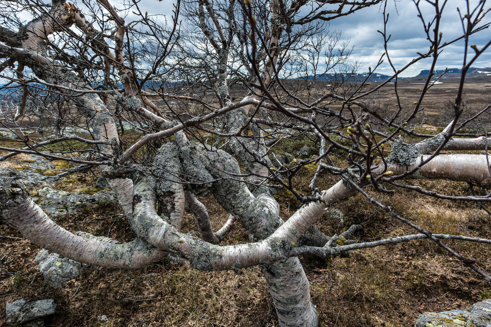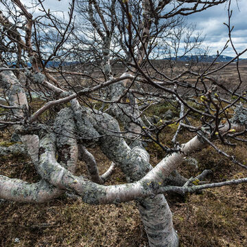 Jag blev fascinerad av fjällbjörkens konstiga vindlingar. Provade flera olika objektiv och kompositioner. Fastnade tillslut för denna som är tagen ett 18mm objektiv på fullformatskamera.