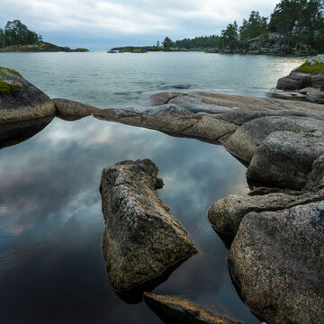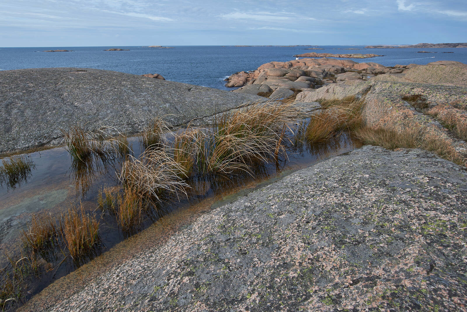 Bilden är från Bohuslän , Stångehufud, oktober 2017. Tog bilden vid jämn molnighet, med utsikt mot skärgården och horisonten. Fick en vy med stort djup och närhet i förgrunden.