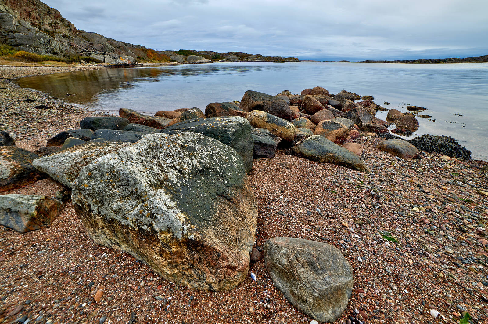 Bilden fotograferad vid bohuskusten mot Gåsö, en mulen oktoberdag 2017. Valde en komposition med förgrund emot det stora landskapet, med öar och horisonten.