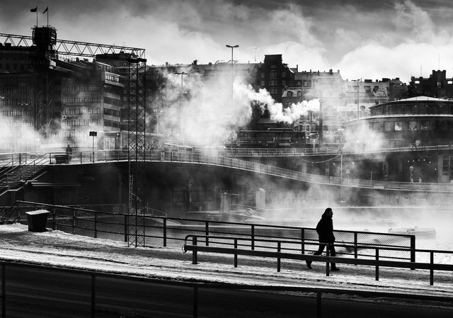En underbar morgon i Stockholm - flanerandet mot Fotografiska museet - tydliga föraningar om den kommande varmare våren och sommaren, trots kylan i luften.