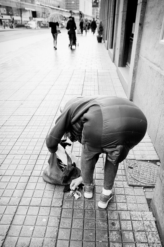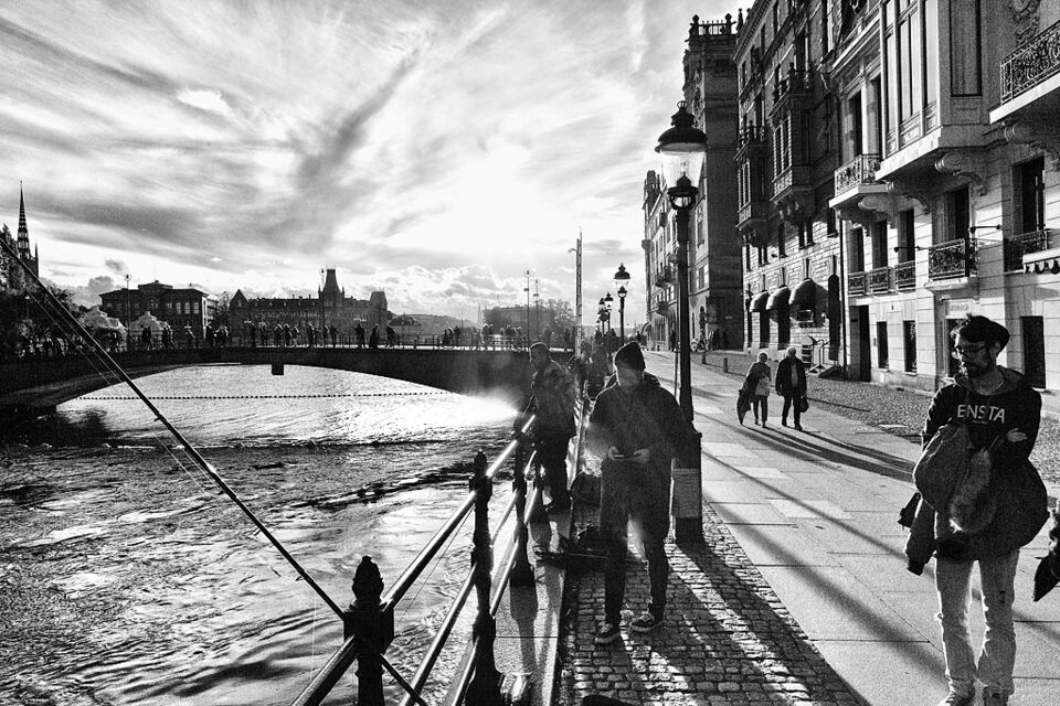 Helt enkelt några svartvita kvadratiska bilder med människor i. Platsen är Riddarholmen i Stockholm.