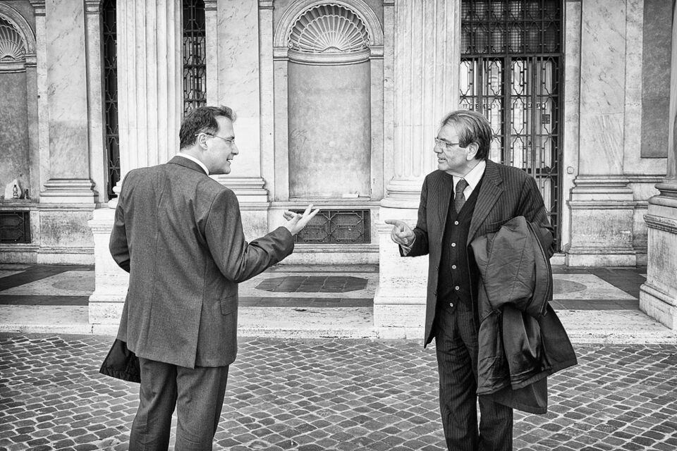 De flesta gatubilder återger människor i ful stadsmiljö. Ju värre desto bättre är en regel som gäller. Men det behöver inte vara så. Åtminstone inte i Rom. Plåtade de här två männen i samspråk ... läs mer..