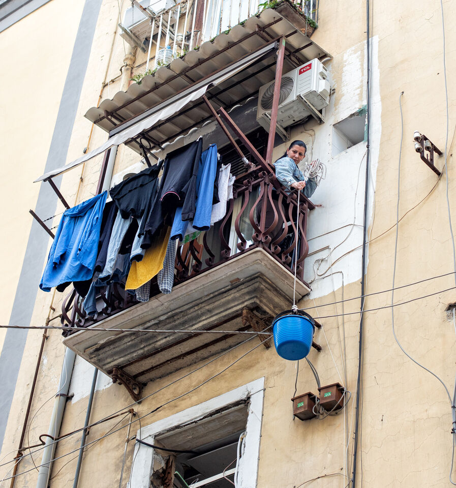 När man vandrar i lite äldre kvarter i Neapel finner man nästan alltid en blå "plastbunke". Ofta hängande på en balkong.