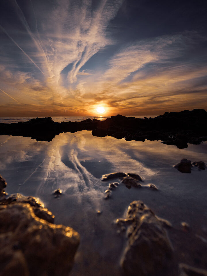 Fotad med 9mm i södra Spanien. Reflektioner från revet som hade lite pölar här o där. Surfare i vattnet.