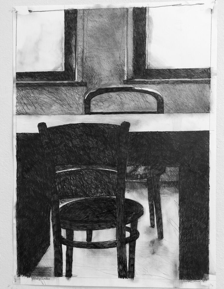 Point of no return. Blyerts på papper. 72x102 cm. 2015. (Tillhör Uppsala kommun offentlig konst.)