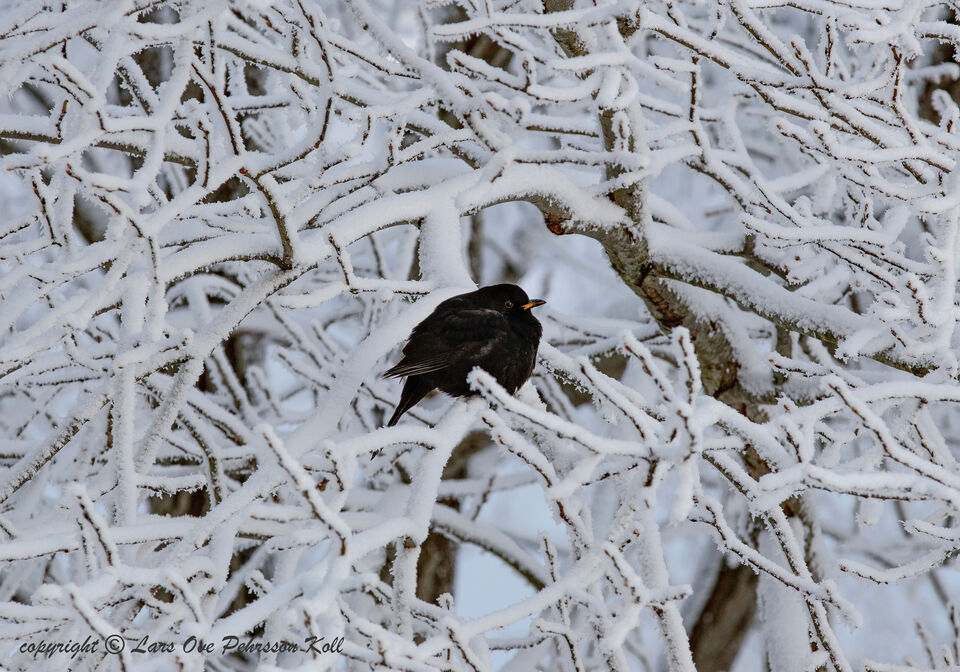 ..dagens bild togs med EF 70-200L i 200 mm från köksfönstret i förmiddag, - 12° C samt dubbla förstorat i PS edited. ser ut som koltrast..? Ps köpte fjorton stora spånskivor på brädgård i Tullinge ... läs mer..