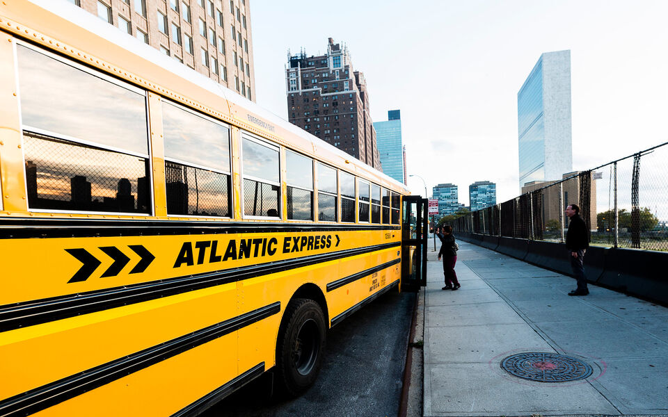 Jag befinner mig i Midtown. Skolbussarna hämtar sina elever. Går till FN-skrapan, men där finns inget liv. ... läs mer..