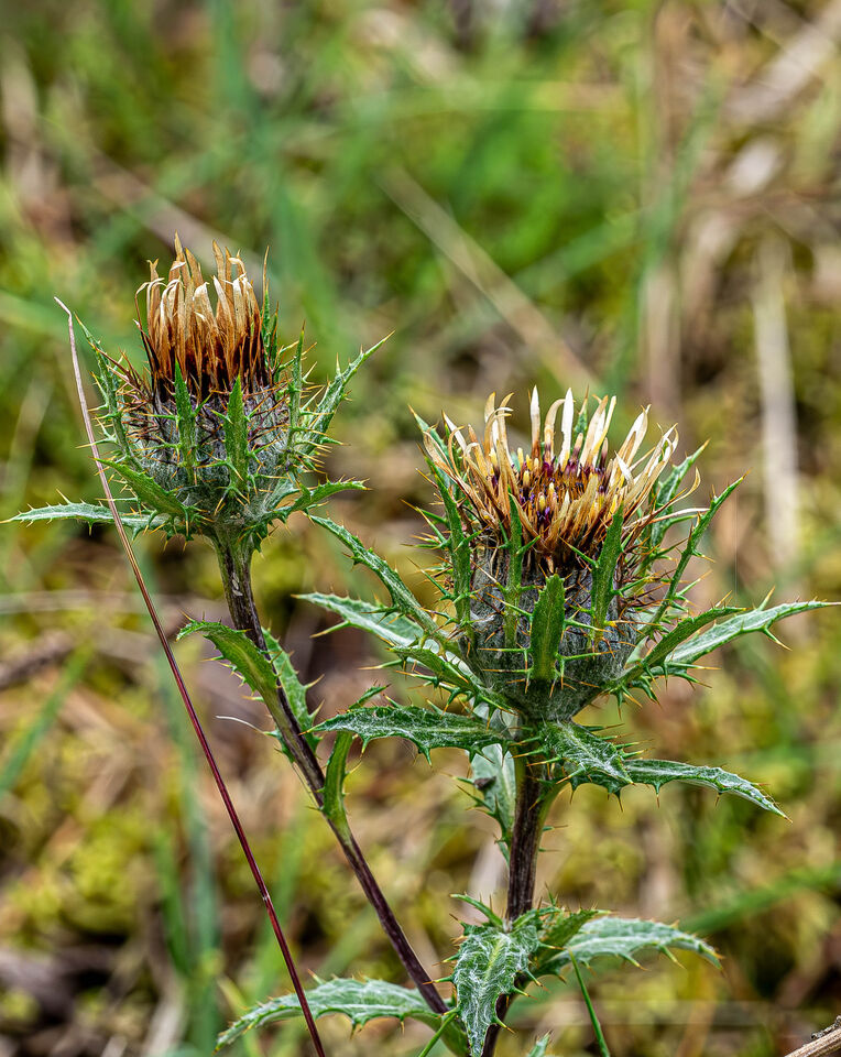 Ja, mer från sommarens skogsglänta, mest växter denna gång. Startar med spåtistel, som heter så då blomkorgarna drar ihop sig i fuktigt väder. Tisteln vill ha torr kalkrik mark.