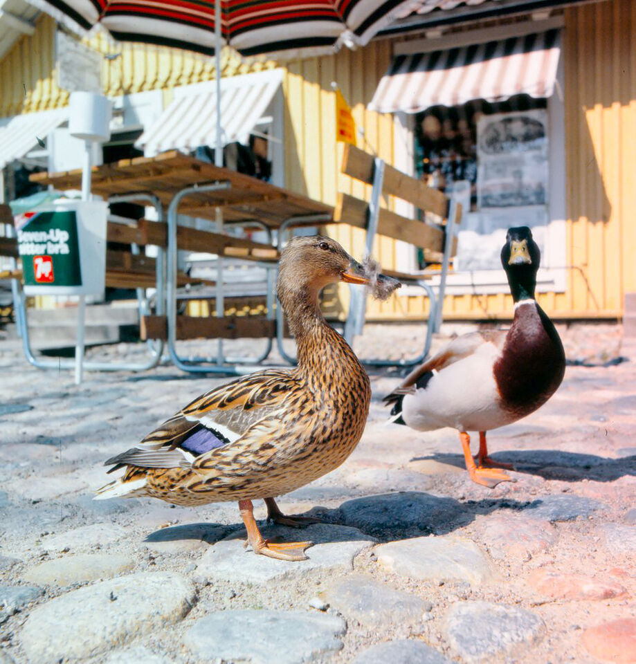 Vid E4 stannade vi och fikar på Polkagriskokeri i Grenna i maj 1980. Min Hasselblad 500 C/M med Planar 2,8/80 mm. Ankor ska bli föräldrar :-) Scanned 2011 Ektachrome 100, skumt framkallad? Hälsningar ... läs mer..