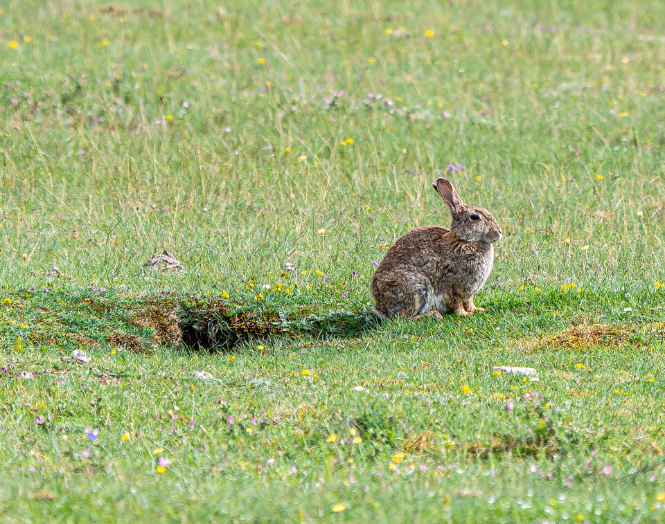 Lite hopsamlat från högsommaren, startar med kaninen som sitter vid sin håla på en enorm platt grässlätt med lättgrävd sandjord. Det finns en del rovfåglar i området, annars är den nog rätt trygg ... läs mer..