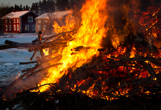 Påskbrasa i Kimo, Österbotten, påsklördag 7.4.2012 kl.20. Foto: Håkan Eklund.