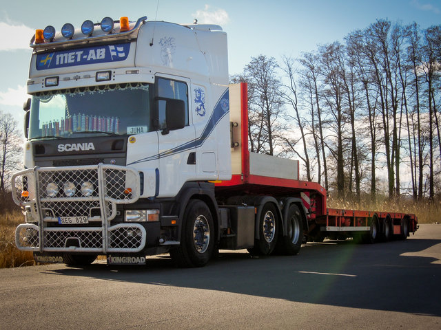 I morgon börjar jag köra special transporter åt DHL, trailern bakom bilen är 13,4m men den går att dra ut till 21m, det är en så kallad trombontrailer. Det går inte att spela musik på den. ;-)