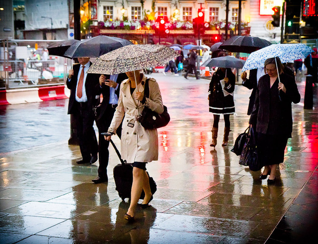Med perspektiv gatufoto blir det nästan lite av karneval när ett skyfall bryter ut. Människor rusar för att ta skydd eller går tryggt vidare med uppfällt paraply. Eller kanske till och med väljer att ... läs mer..