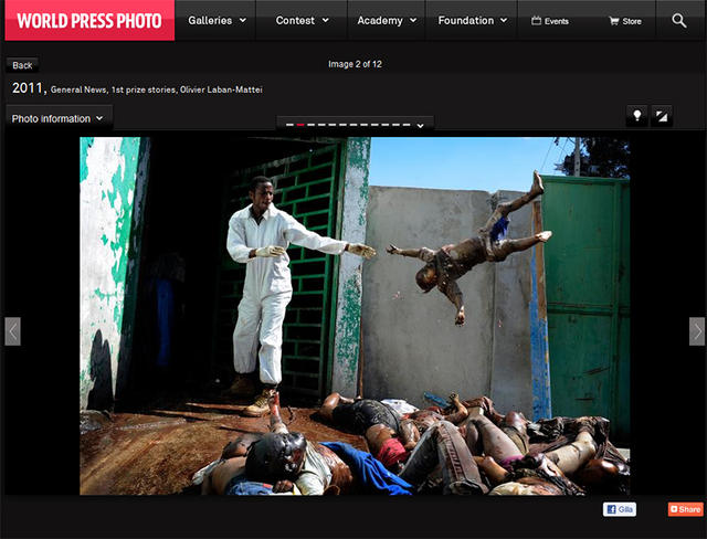 Hos World Press Photo finns det bilder som berör. Jag fastnade vid en bild som fotojournalisten Olivier Laban-Mattei har tagit. Bilden är från jordbävningen på Haiti.