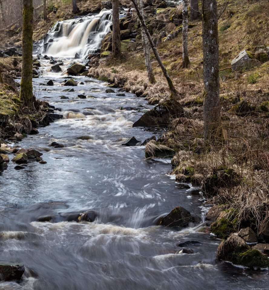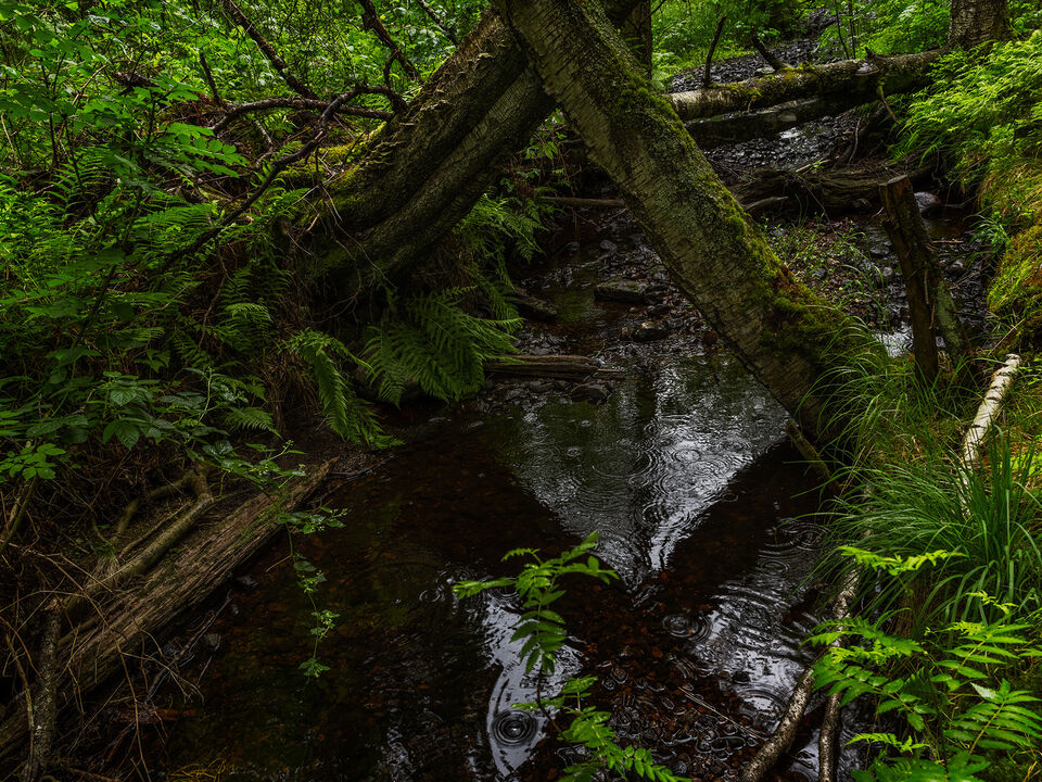 Det var inte sig likt efter regnet. Träd har fallit ner i ån. Vattnet har stigit något.