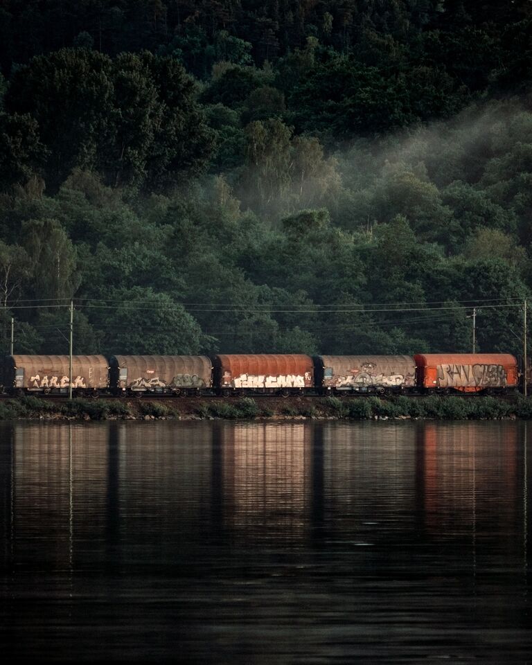 Lyckas aldrig få godståg på bild men idag passerade ett när jag var ute på bryggan nere vid sjön och fotade solnedgången.