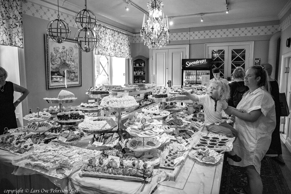 Taxinge Slottcafé i Sörmland i extremsommar 2018 från Sthlm på 60 min bilkörning. Bilden är tagen från EF 24-70L IS vid 24 mm, exif data bländare f/4,0 slutartid 1/160 sek, filmkänslighet 3200 ISO ... läs mer..