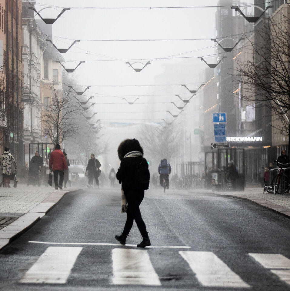 Temperaturväxlingar skapar dimma, som hör våren till. Trist väder, men enda sättet att komma framåt. Mot vår. Åbo centrum 20.3.2023. Foto: Håkan Eklund. Bild nr 79/365. läs mer..