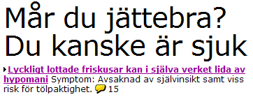 I kvällstidningarnas värld kan minsta åkomma vara tecken på dödlig sjukdom. Som åkomma räknas numera även ett gott humör.