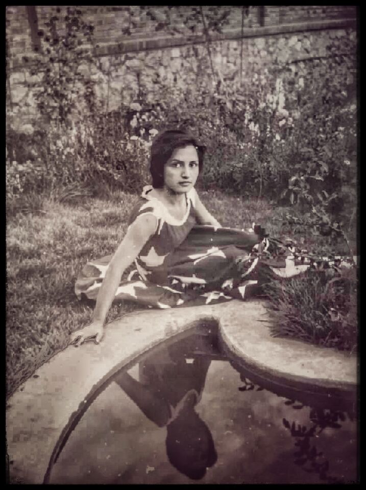 Jag ser på en bild av en ung kvinna i en trädgård i Teheran.