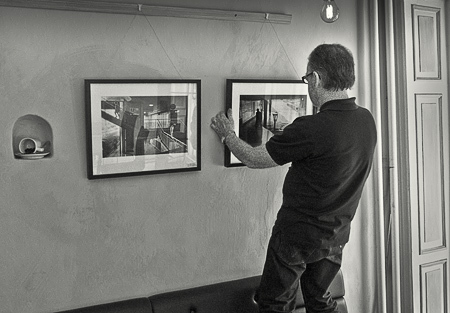 Bengan och Krister på att hänga upp nya bilder på väggarna. ... läs mer..