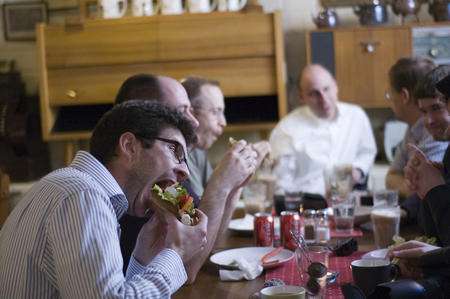 Här är det Emil som hugger in på en god macka. Bakom syns Janne, Björn, ... läs mer..