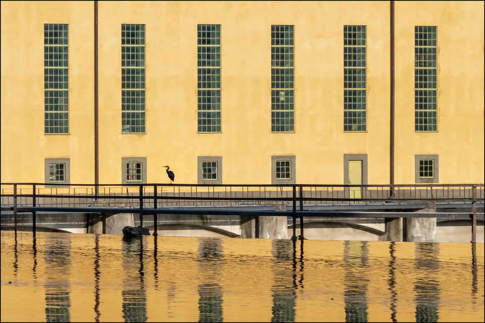 Om bilden; Industrilandskapet förstås, och ingen märkvärdig bild alls - tyckte bara att den låga höst-morgonsolen framkallade så mustiga färger i Strömmens vatten.