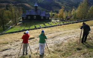 Sollia kyrka fotograferas, Stor Elvdal, Norge 21.9.2007. Foto: Håkan Eklund.
