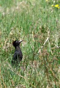Spillkråkhona (Dryocopus martius) i myrstack.