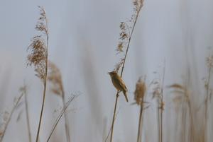 Sävsångaren (Acrocephalus schoenobaenus) sjunger. Hirvensalo, Åbo 20 maj 2007.