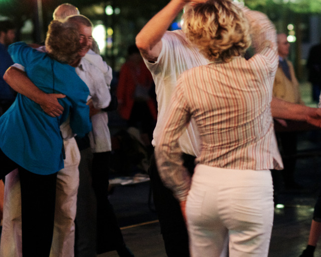 Det var dans i Kungsan i går kväll. En skara entusiaster trotsade det kyliga vädret och gav sig ut i dansens virvlar till storbandets musik.