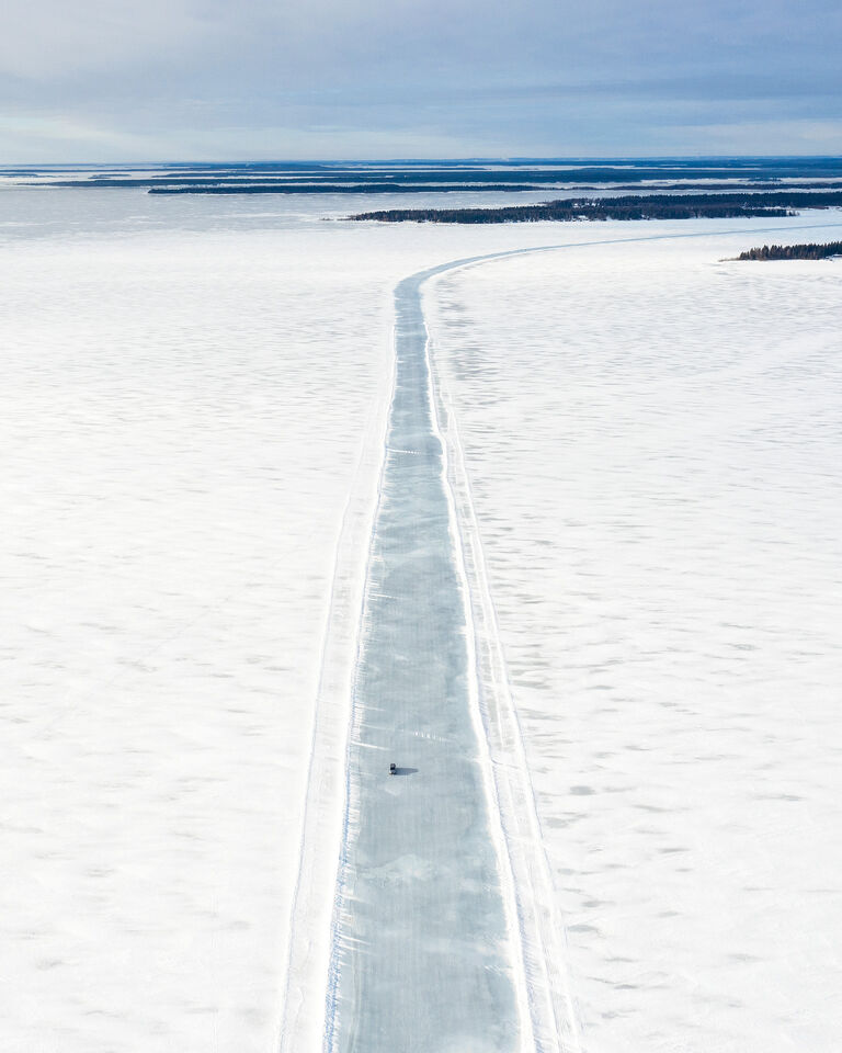 I Luleå är den populära isvägen ett ofta välbesökt alternativ att färdas på antingen med bil eller med skidor. Sol och vackra dagar mot den femte årstiden.