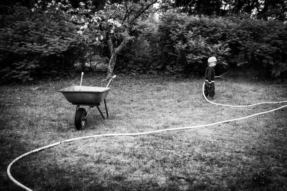 Trädgårdspyssel med plantering idag och jag fick hjälp med vattningen av Lilleman. Det får bli dagens bild.