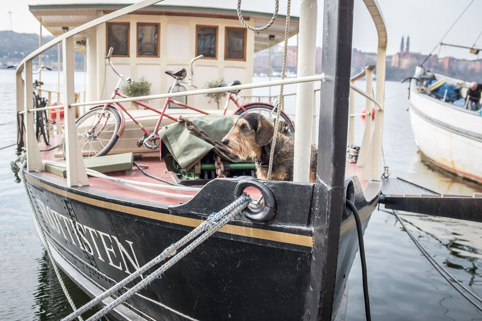 Sett på Norr Mälarstrand idag. Den stolta skeppshunden på skeppet Flottisten, som med stor värdighet höll koll på alla flanörer som gick förbi.