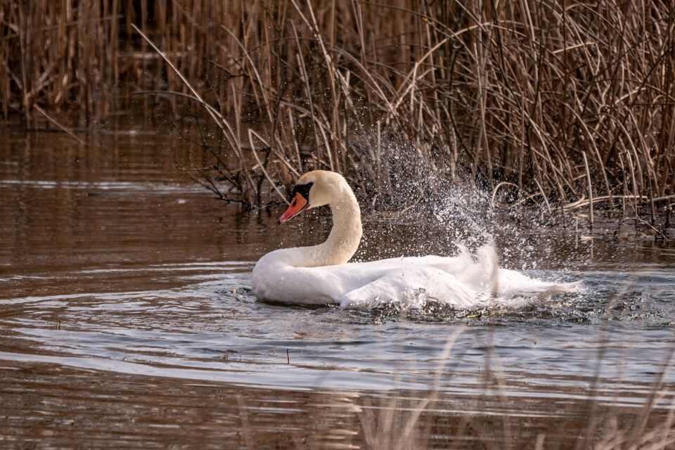 Svanparet är i sin vanliga damm, boet snart klart att lägga ägg i. Vattnet skall bara sjunka. Båda ägnade sig åt vårrengöring, så jag tog några bilder.                         läs mer..