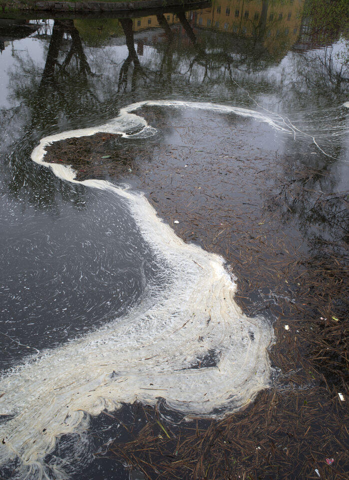 Påskdagen såg vattnet i Hästskodammen ut så här.