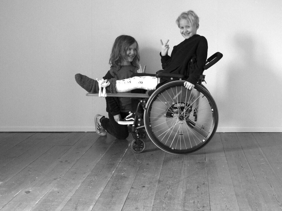 Det här är andras ungar. Men lika glada för det. Även med åttaveckorsbenbrott för den ene. Glad support från den andre. Jo precis, första sportlovsåket i backen berättas det.
