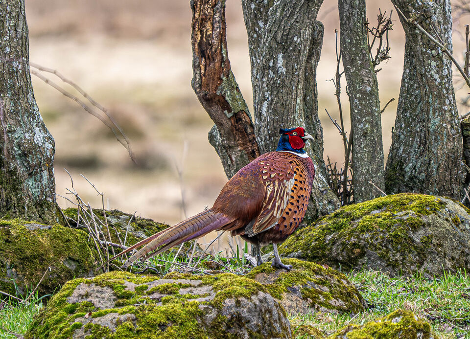 Den stilige herr Fasan, helt ensam utan damsällskap ute vid fälten, så är det hemma också
