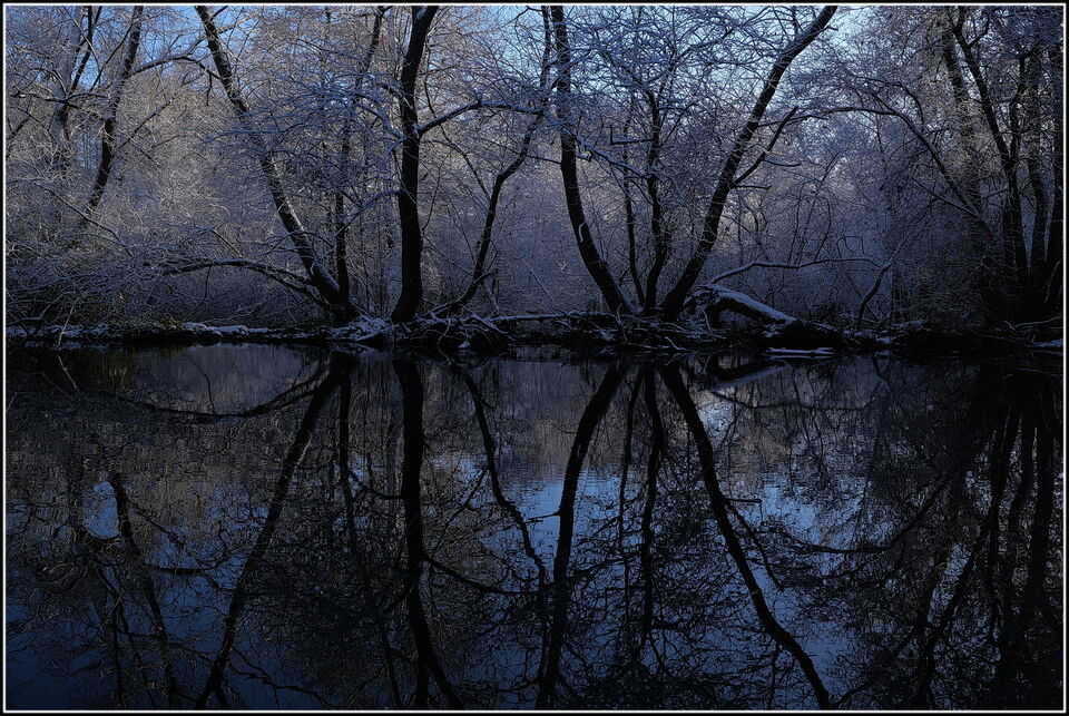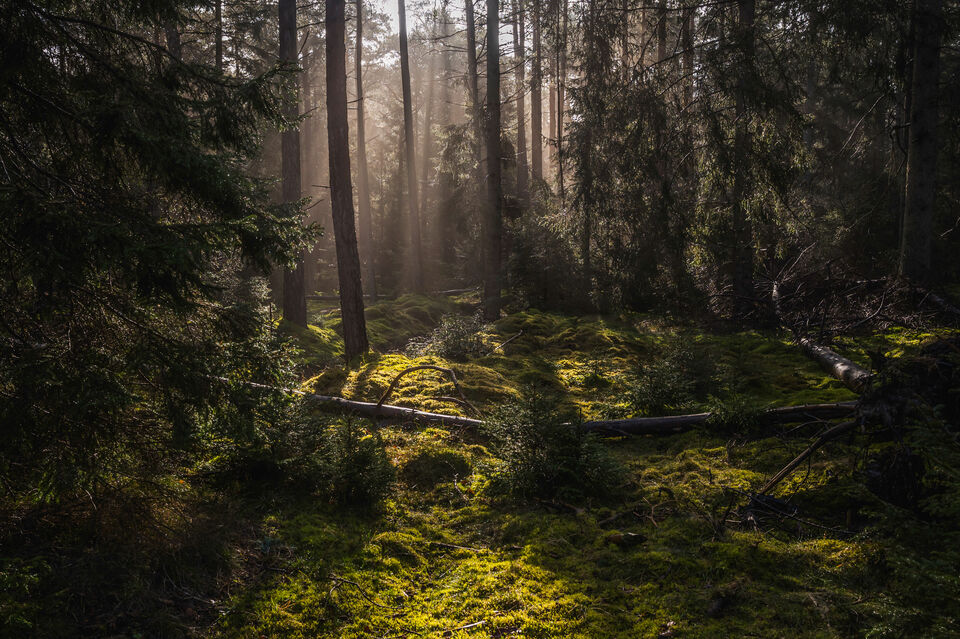 Tanken var att de här bilderna skulle vara i svartvitt, men så lyckades solnedgångsljuset sila sig genom skogen och färga några detaljer. Så bilderna fick bli i både färg och svartvitt, (som så många ... läs mer..