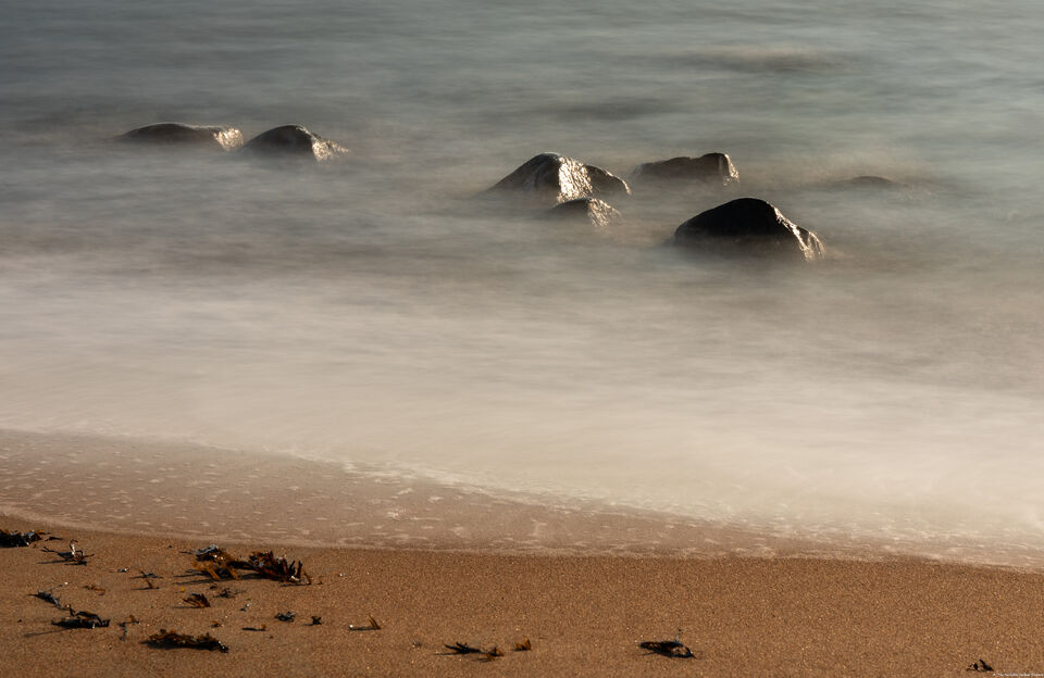 Stormarna rasar över Hanöbukten. Vågorna slår in mot stranden och vissa är så höga att de går över hela stranden och tar med sig stenar som fastnar vid trädens rötter som vaktar naturen ovanför. ... läs mer..