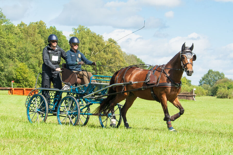 Här är det hästen Hardohoeve's Marina som ska ta sig an vattenhindret.