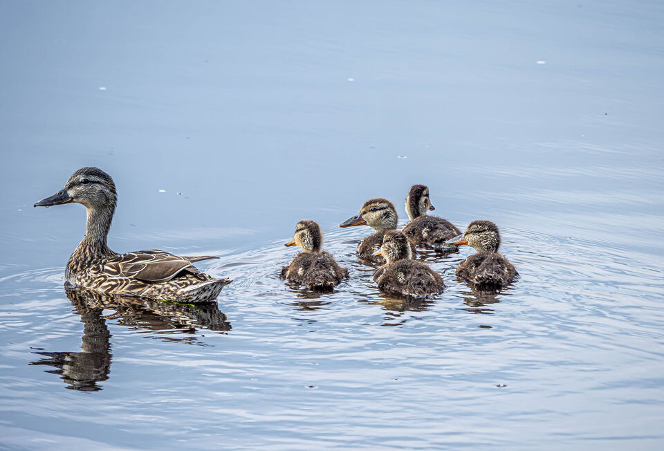 Det var i början av juni, en lugn fin dag vid stilla vatten och ett visst fågelliv. Mamma anka ett ett simmade runt med ungarna