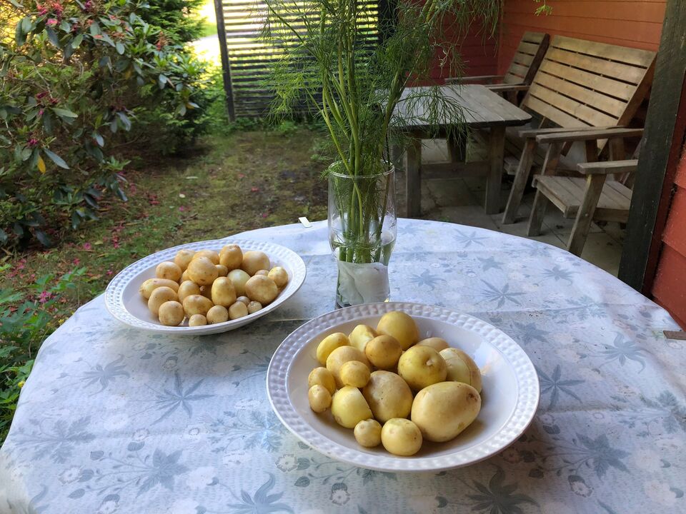Klämmer in en flash i Ölandsserien om att jag fyller 70 idag och att det firades med att i morse gräva upp årets första potatis från kökslandet i Kungsbacka :)